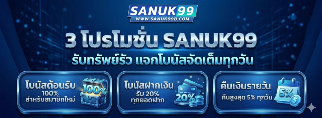 3 โปรเด็ด โปรโมชั่น sanuk99 รับทรัพย์รัว แจกโบนัสจัดเต็มทุกวัน